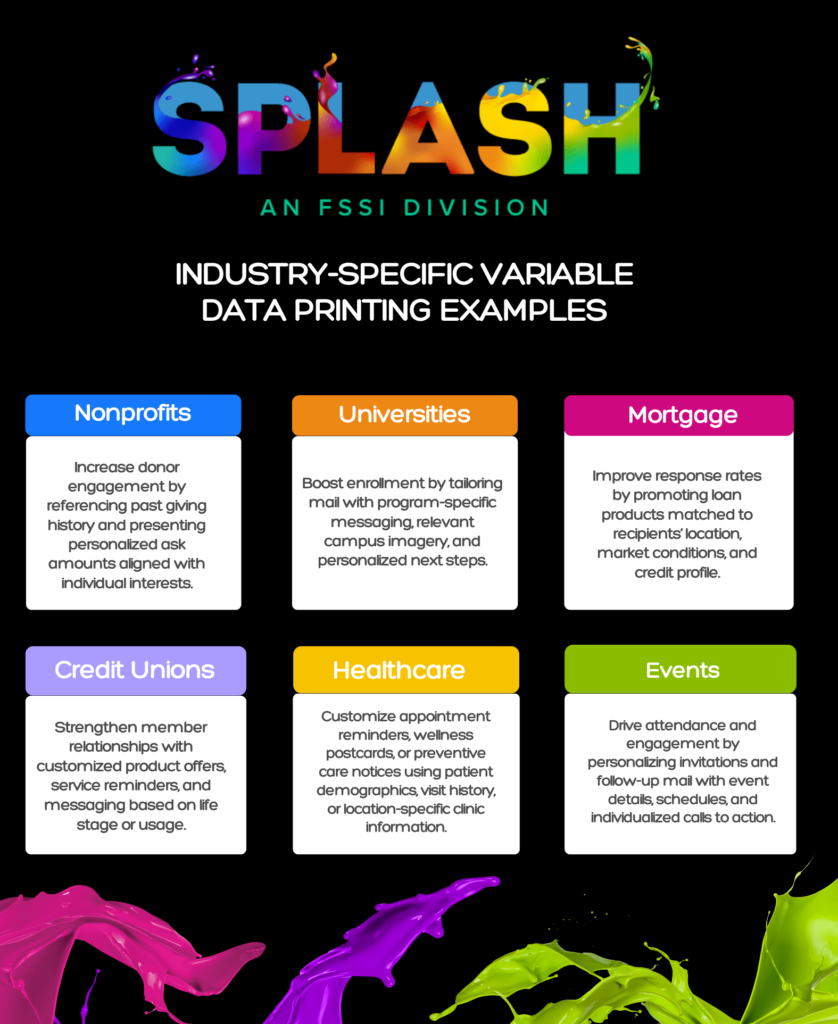 Whether you serve nonprofits, universities, credit unions, or mortgage companies, using variable data printing enhances your campaign’s relevance and drives improvement in direct mail response rates. By combining the efficiency of digital printing with targeted messaging, VDP delivers highly effective personalized direct mail marketing that builds stronger customer relationships and boosts ROI.